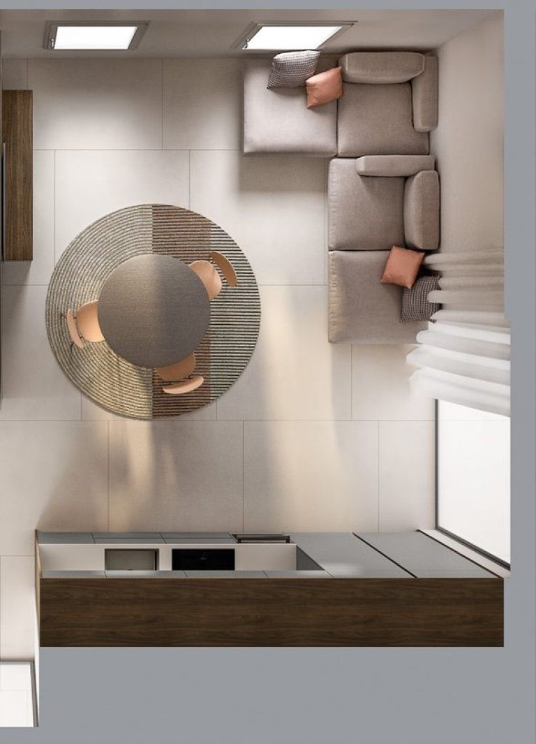 It adapts to long and narrow rooms as well as one-room apartments – where the living area and kitchen area are integrated – and even to large open-plan rooms.