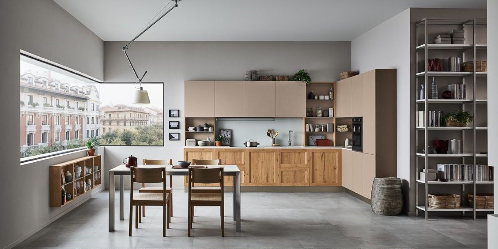 A corner kitchen is the ideal solution in cases where space is limited. This does not mean that it cannot benefit larger rooms, especially if you like the idea of placing worktops along the walls to furnish the large remaining central area with a beautiful table.