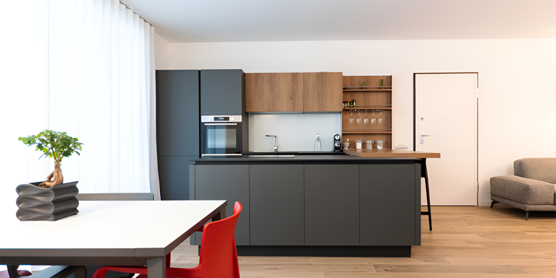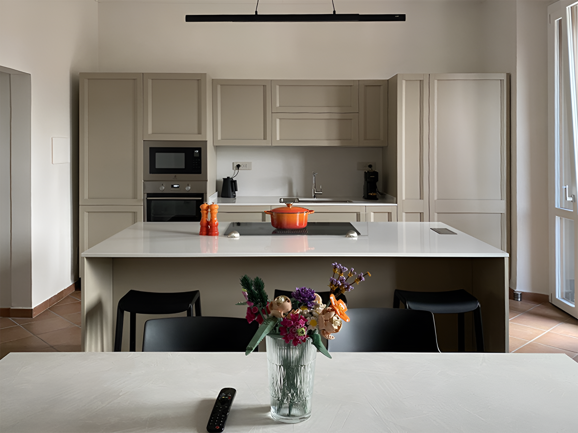 Imagine having guests for dinner: an open kitchen immediately makes the atmosphere more informal because those busy preparing aperitifs or dishes are not excluded from the conversation: friends find themselves all together in the same room.