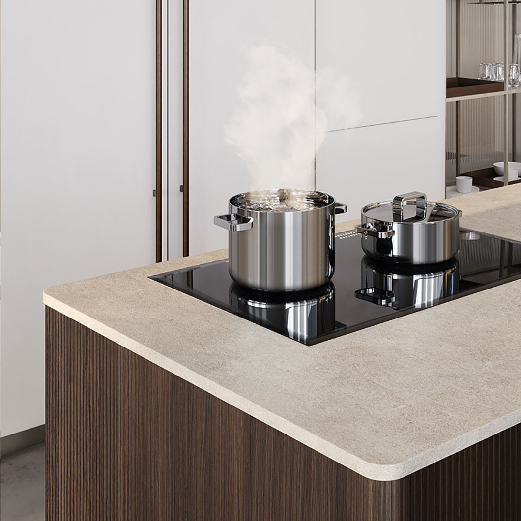 A ceramic kitchen worktop is designed to tolerate heat: you can place boiling hot pots and pans on it without any fear, but avoid direct contact with the flame.