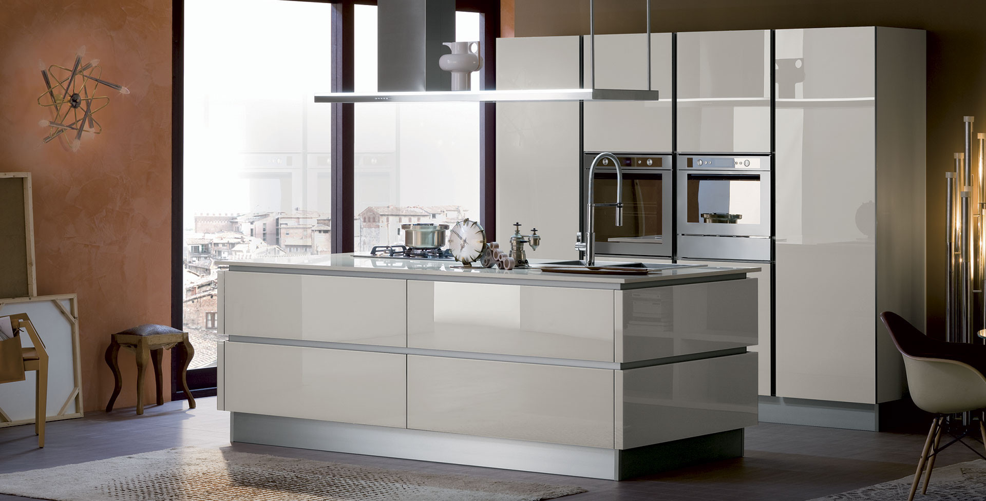 Are you fascinated by the elegance and minimalism of a glass kitchen? Visit the “Kitchens” and ““Furnishing Accessories” sections on our website and search amongst the models proposed. And if you want to see the virtues and aesthetic qualities of this material for yourself, at Veneta Cucine dealers you will be able to find expert interior designers ready to advise you on the choice of your ideal kitchen.