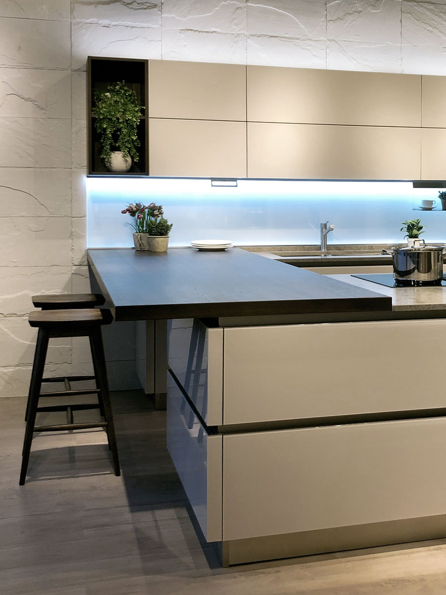 Vous êtes fasciné par l’élégance et le minimalisme d’une cuisine à base de verre ? Visitez notre site dans les sections “Cuisines” et “Accessoires d’ameublement” et cherchez parmi les modèles proposés. Et si vous voulez voir de vos propres yeux les vertus et les qualités esthétiques de ce matériau, auprès des revendeurs Veneta Cucine vous pourrez trouver des décorateurs d’intérieur experts prêts à vous conseiller dans le choix de votre cuisine idéale.