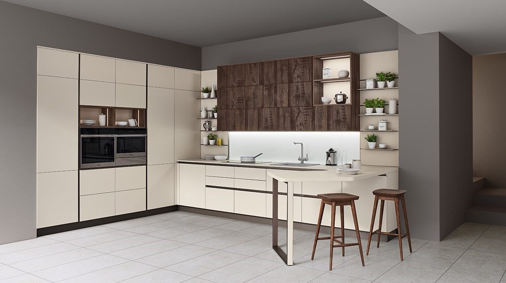 Se scegli una cucina ad angolo per la sua capacità di ottimizzare gli spazi, ti consigliamo di inserire i piani cottura o i lavandini nelle zone angolari così da sfruttare al massimo le parti di pareti solitamente inutilizzate.